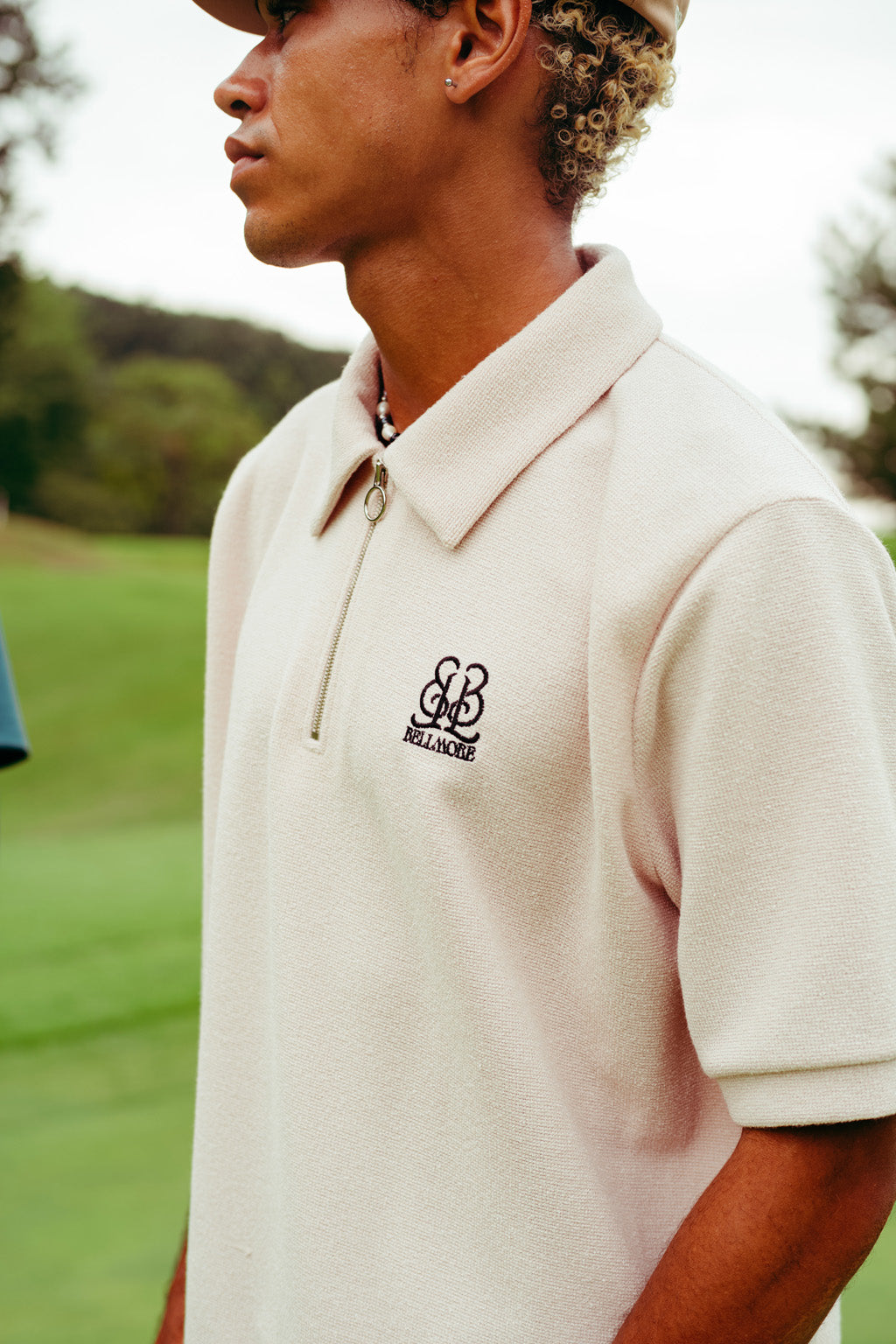 EMBLEM SS ZIP POLO SHIRTS - CREAM