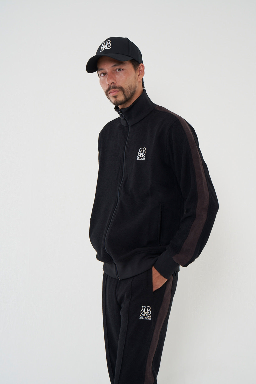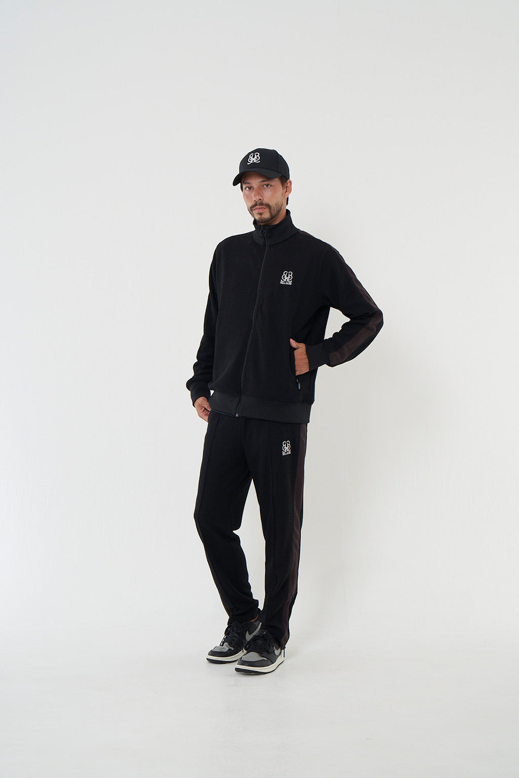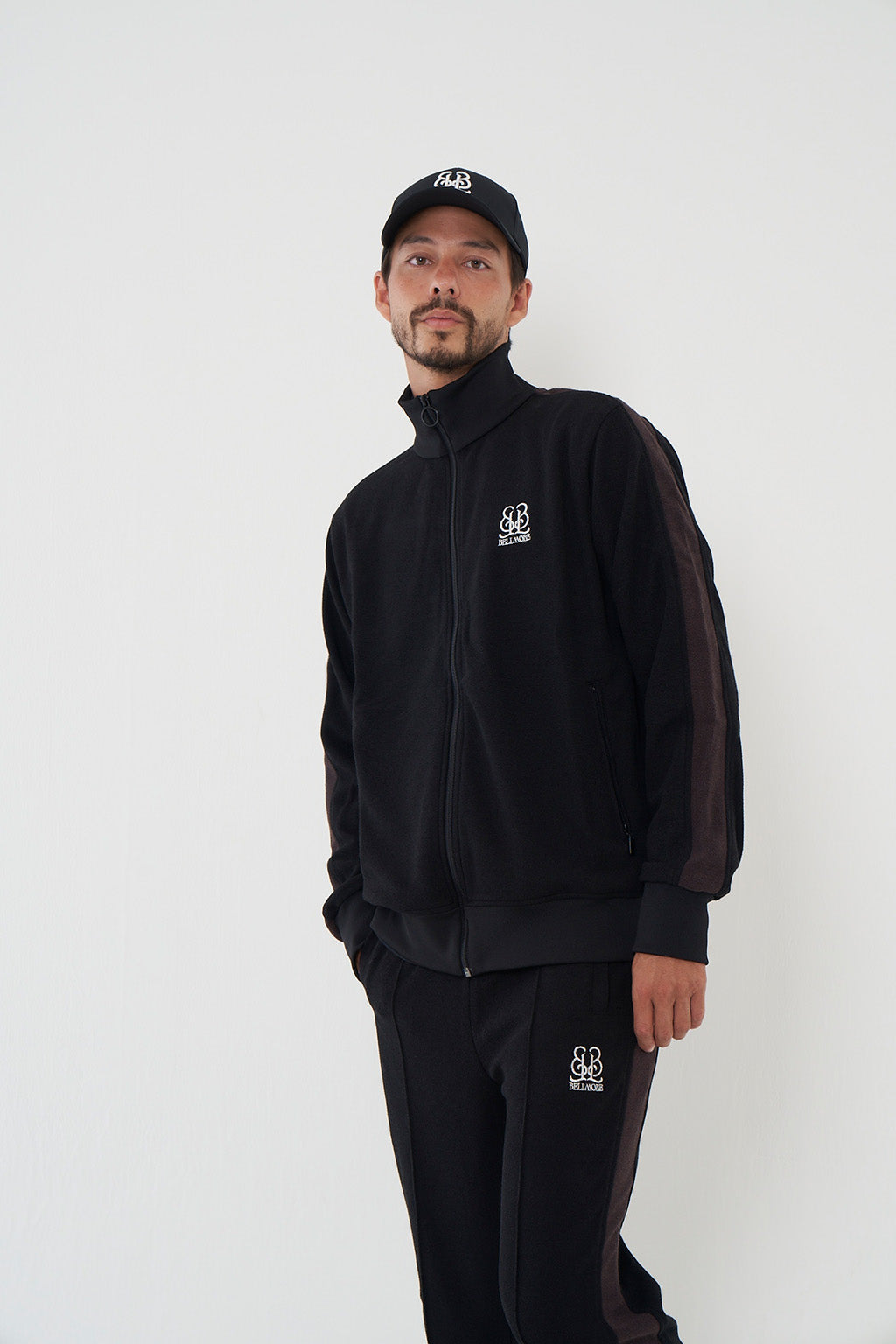 "EMBLEM TRACK JACKET"とセットアップでの着用可能、ポケットにはジップが施されています。
