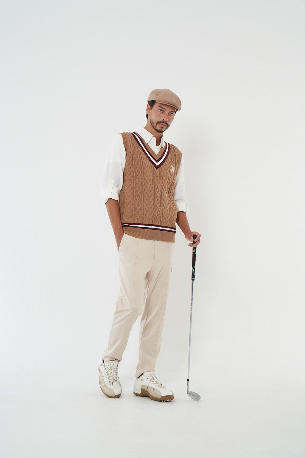 EMBLEM V-NECK KNIT VEST - BROWN