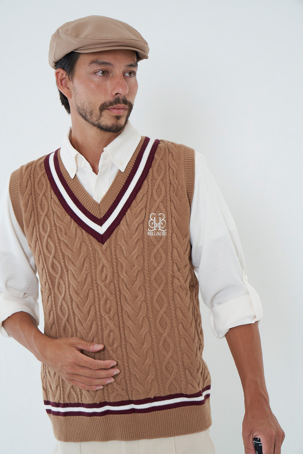 首元がVネック仕様となるVネックニットベストとなります。
